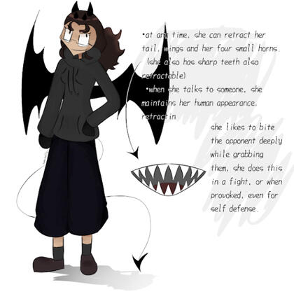 ⎯⎯➢ She can switch between being half demon or human, as her demon parts are retractable
